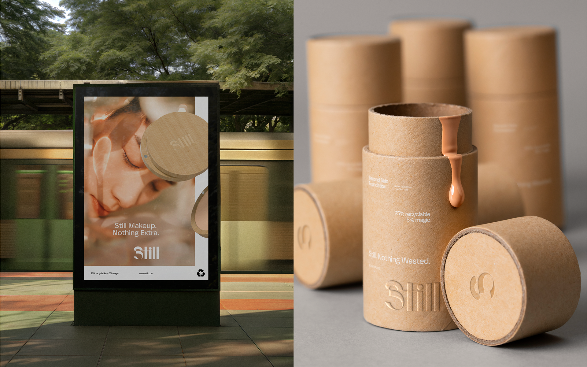 Still’s packaging is designed with sustainability at its core: 95% recyclable, 5% magic. Neutral, earthy tones and minimal finishes reflect the brand’s “nothing extra” philosophy. The choice of simple, reusable, and recyclable materials redefines beauty packaging with elegance and responsibility.