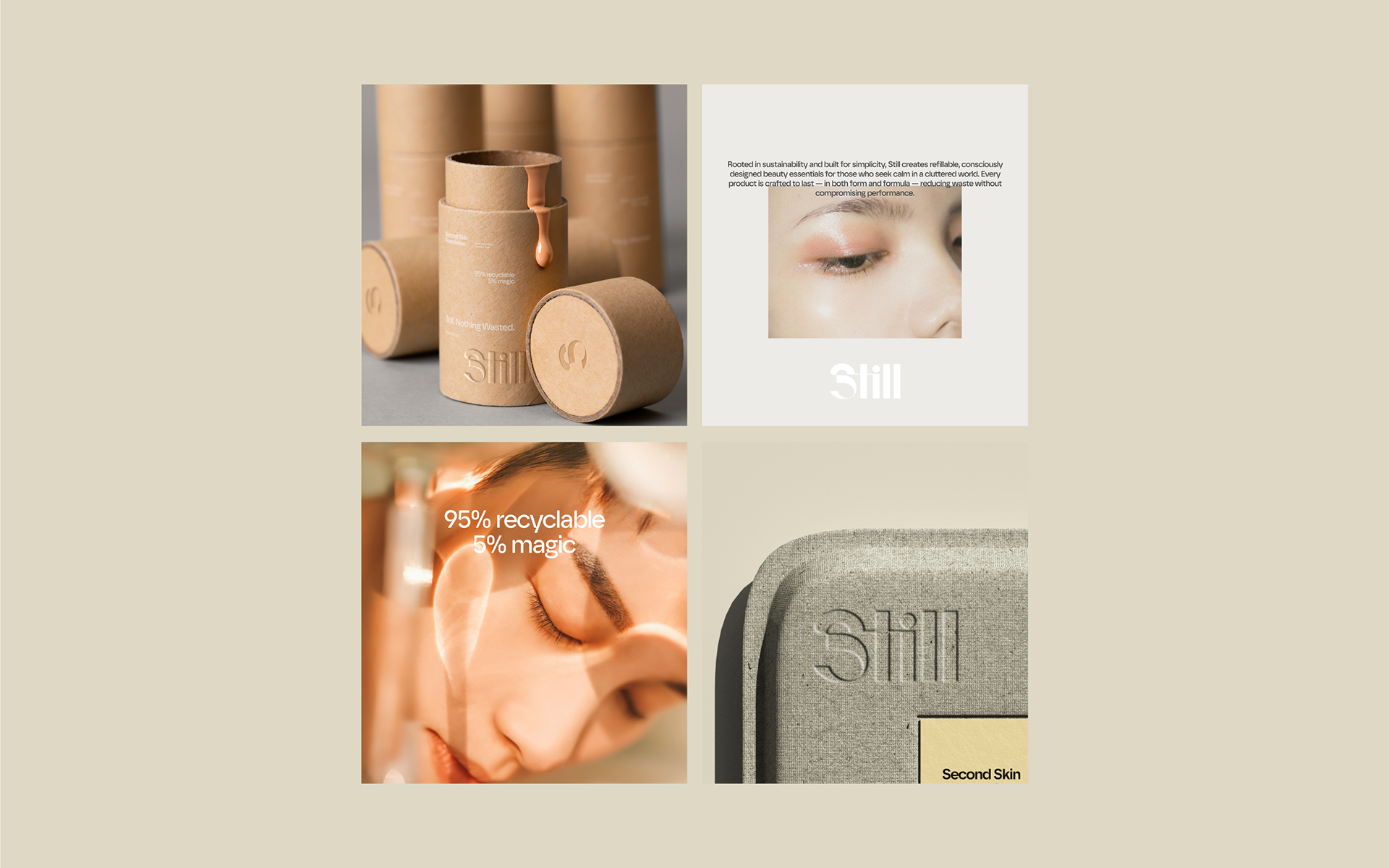 What sets Still apart is its radical simplicity. While other beauty brands chase trends, Still embraces timelessness. By combining sustainability with modern, minimal aesthetics, the brand positions itself as both eco-conscious and stylish. Every packaging choice, illustration, and layout is designed to whisper rather than shout — allowing the product and the wearer’s own beauty to take center stage.